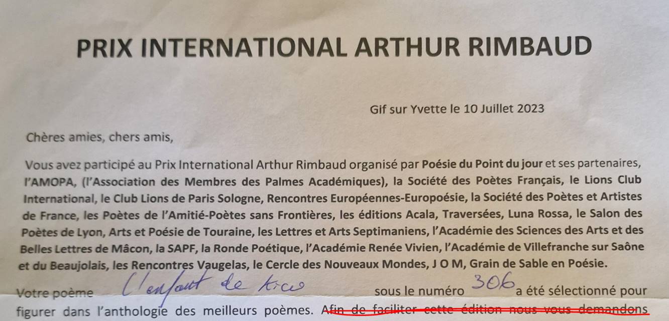 Participation ouvrage collectif aux éditions rencontre des auteurs francophones